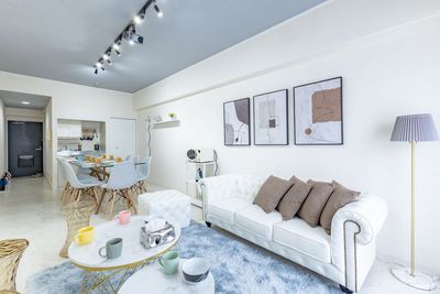 室内は想像以上に広くてキレイ!白を基調としたおしゃれな空間で、15人でも窮屈感ゼロ✨ ダイニングテーブルもしっかりしていて、たこ焼きパーティーにもぴったり🐙