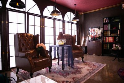 部屋は思ってた印象とだいぶ違いました。黒い長ソファは無く、絵画の描かれた変わった椅子になっており、窓からライトが照らされているかと思ったら何もなく、電気も一個のスイッチなので暖色と白いミックス光が一気に点灯。写真スタジオなのに写真に向いていないと思います。